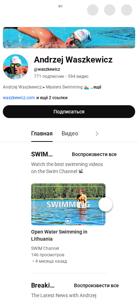| AI-анализ | This website, titled "Andrzej Waszkewicz - YouTube," is the official YouTube channel of Andrzej Waszkewicz, a Masters Swimming athlete. The channel focuses on creating heartwarming storytelling and entertainment around Masters Swimming, triathlon, Ironman Triathlon, longevity, health, workout, and street workout. The keywords associated with the channel include "Andrzej Waszkewicz," "Masters Swimming," "Swimming," "Masters athlete," "Triathlon," "IRONMAN Triathlon," "Longevity," "Health," "Workout," and "Street Workout." The top words on the channel are "andrzej," "waszkewicz," and "swimming," with 148, 147, and 27 |