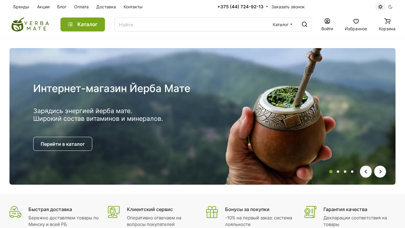 | SEO-описание | Купить мате в Минске можно в нашем интернет-магазине с доставкой по всей Беларуси. Первый интернет-магазин мате в Беларуси. В наличии марки Reserva Del Che, Rosamonte, Taragui, Amanda и другие известные марки йерба мате. |