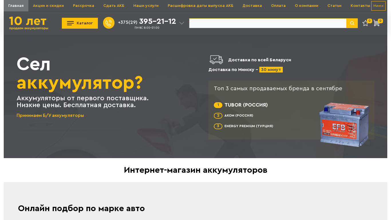 | SEO-описание | Более ✅️ 500 моделей ✅️ аккумуляторов на автомобиль в ✅️ каталоге Akkumulyatory.by. ✅️ Бесплатная доставка по Минску и Беларуси! ✅️ Низкие цены. ☎️ 395 21 12. |