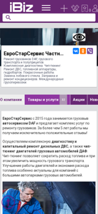 | AI-анализ | This website is a private enterprise, EuropStarService, that specializes in the repair of DAF trucks, cargo vehicles, and semi-trailers. The services offered include comprehensive diagnostics, chip-tuning, repairs on engines, fuel systems, and hydraulic systems. Additionally, the company provides painting services, windshield replacement, and conditioner refueling and repair. EuropStarService also offers international cargo transport services. The company's address and contact information are provided on the website. |