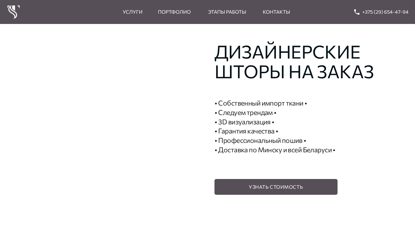 SEO-описание | Салон штор в Минске: современные и классические шторы, французские и лондонские шторы, уличные шторы, пошив подушек и покрывала . Гарантия качества. Звоните по телефону + 375 (29) 654-47-94. Cалон TELAS - Идеальное преображение вашего интерьера! |