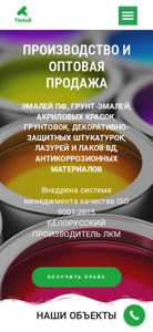 | AI-анализ | The web project "Tintoll" is a Belarusian e-commerce website specializing in the wholesale sale of paints, coatings, and related materials from its own production in Minsk. The website offers a range of products such as emulsions (PF series), ground coats (GF series), solvents (646), white spirit, acrylic paints, primers, and decorative plaster. Tintoll is a certified Belarusian manufacturer with ISO 9001:2015 quality management system in place. The website showcases various projects where their products have been used, such as residential homes, schools, and industrial structures. The catalog section provides detailed product information, including specifications, application instructions, and certifications. The website also features a blog, contact information, and a section for clients to request a quote. The site's design is simple |
