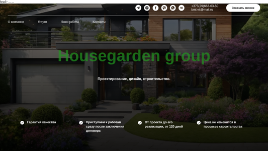 | AI-анализ | The web project "Housegarden Group" is a Belarusian company specializing in architectural design, landscape design, interior design, home renovation, and construction. The company offers services in designing, building, and renovating homes and apartments. Their work covers all stages, from the initial planning to the final finishing, and is executed by highly qualified specialists to ensure a high-quality result. Housegarden Group has been in operation for many years and aims to create ideal and comfortable living spaces tailored to clients' individual preferences and budgets. The website provides contact information, including phone numbers and an email address, for clients to request consultations. Realized projects include the landscaping of a power plant, the construction of various homes, and the renovation of a barn-style building. |