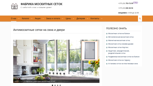 | AI-анализ | The website is a manufacturing company named 'Фабрика Москитных Сеток' specializing in the production and installation of various types of mosquito nets for windows and doors. The company caters to all types and forms of windows and doors, offering solutions for both residential and commercial properties. The website provides details on various types of mosquito nets including framed, folding, roller, and sliding ones. Each net can be installed in window and door frames, as well as other structures. The website lists prices for various types of mosquito netting materials, such as standard, anti-mosquito, anti-dust, and anti-allergen, ranging from 30 rub to 170 rub for doors and 30 rub to 300 rub for windows. The website also offers complementary netting solutions and components for purchase. |