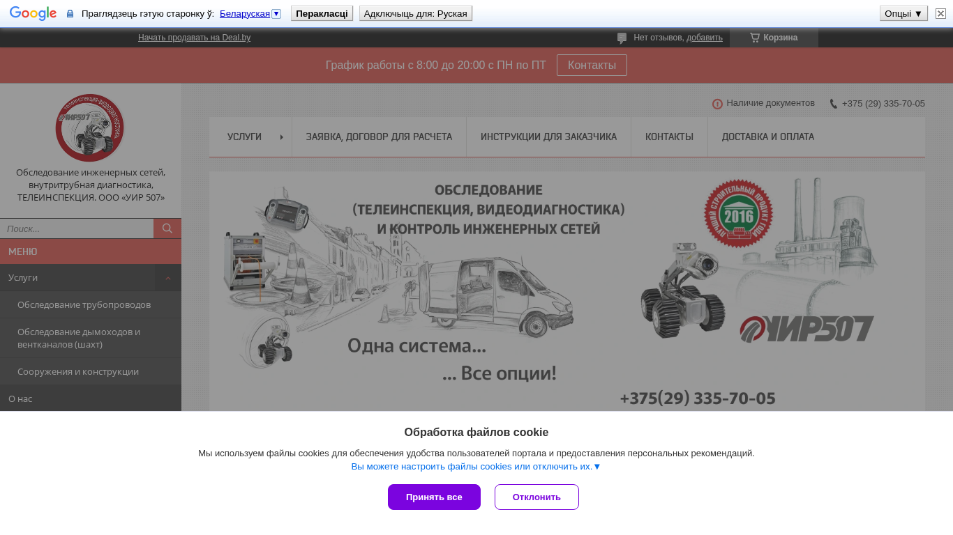 | Название / Заголовок | Обследование инженерных сетей, внутритрубная диагностика и телеинспекция в Беларуси и СНГ от компании "ООО «УИР 507» (uir507Ltd)" |