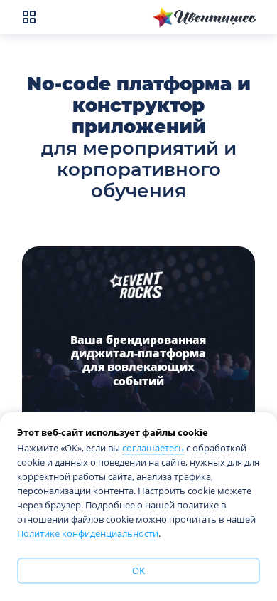 | SEO-описание | Платформа для любых мероприятий: корпоративных и публичных, конференций и форумов, фестивалей и бизнес-туров. Ивенты любого формата - онлайн, офлайн, гибридные и долгоиграющие цепочки мероприятий. |