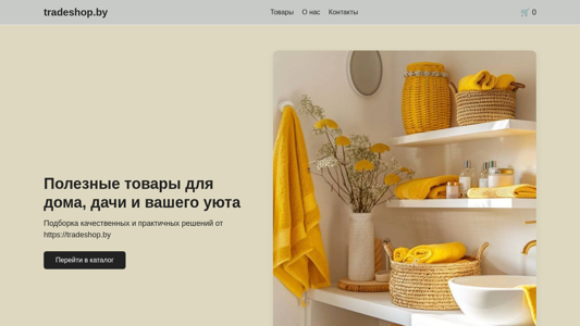 | AI-анализ | This website is a catalog for goods offered by tradeshop.by. The title of the website is "Каталог товаров — tradeshop.by" and the description includes keywords such as "каталог," "товары," and "tradeshop." The website offers useful items for home, cottage, and daily life. It boasts of practical solutions at fair prices. The contact information includes a phone number and email address. The business is registered under the name of D.Y. Bobok, with UNP number 291909789, and was registered in 2025. The business hours are indicated as Monday to Friday, 10:00-20:00. The website offers delivery across Belarus. The footer includes links to policies such as confidentiality, user agreement, terms of sale, and delivery conditions. The website is |