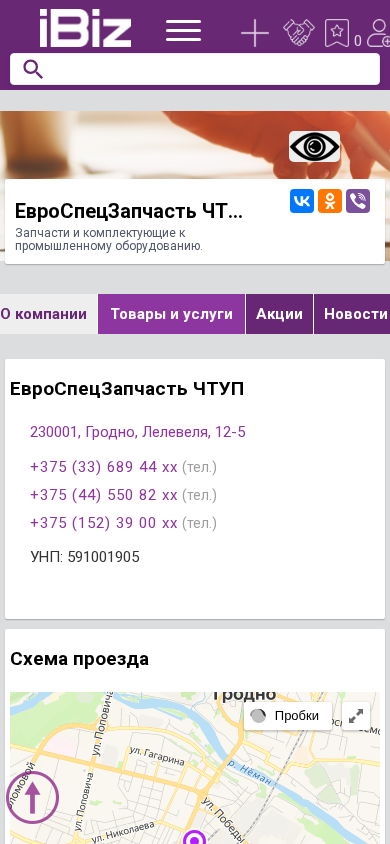 | Название / Заголовок | ЕвроСпецЗапчасть ЧТУП - Запчасти и комплектующие к промышленному оборудованию. . 230001, Гродно, , Лелевеля, 12-5 |