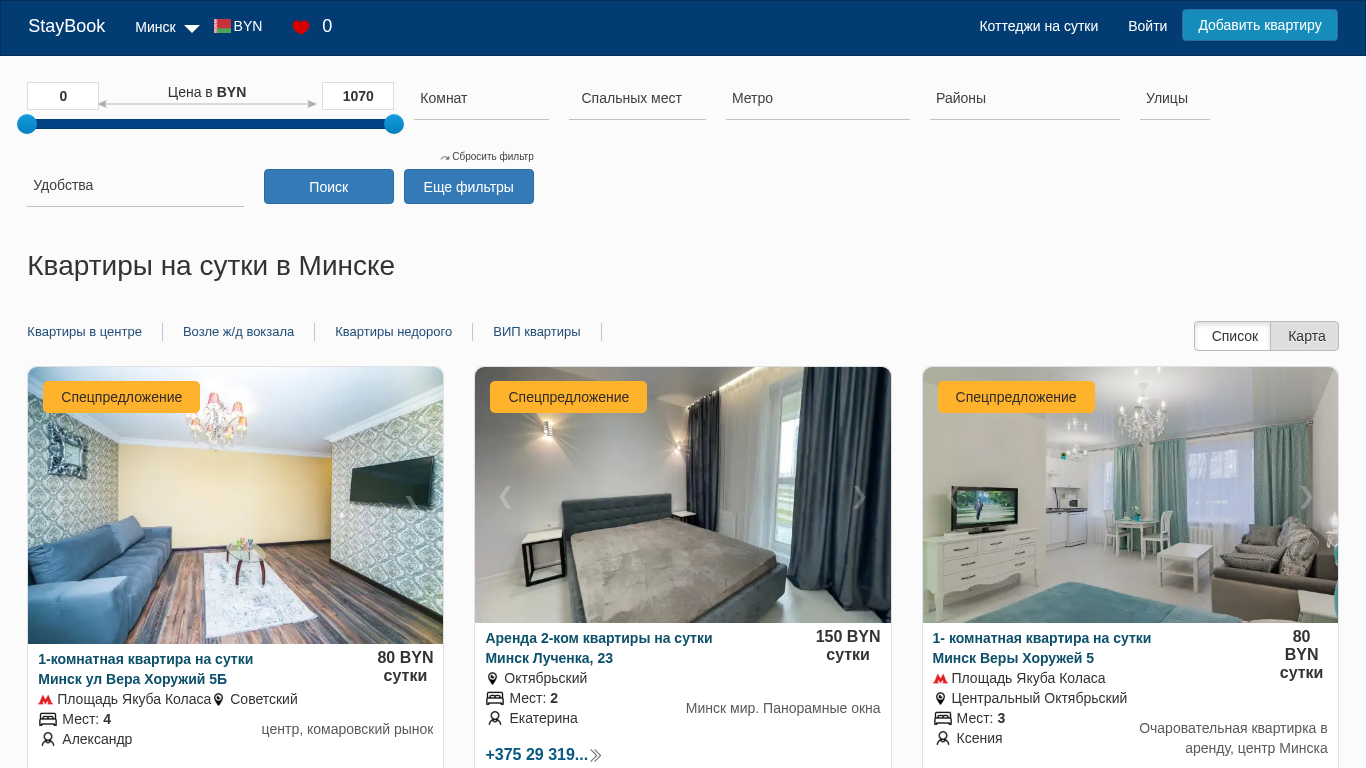 | SEO-описание | ▶ Квартиры на сутки в Минске без посредников! ✅ Аренда квартир в Минске посуточно напрямую у владельцев. ➜ От 40 рублей, любой район, актуальные цены. |