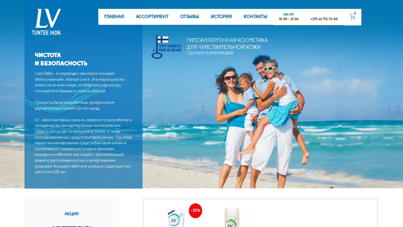 | AI-анализ | The portal LV cosmetics is a Finnish brand specializing in the development and production of hypoallergenic cosmetics and household chemicals for hair and body care, and household cleaning. The brand, which translates to 'white snow' or 'pure snow' in English, has gained widespread popularity in Sweden and the Baltic countries. It was founded by Professor of Dermatology Sonkom over 50 years ago. LV is a leading Finnish brand in the field of hypoallergenic cosmetics and household chemicals. The trademark LV was specifically created by the Finnish Berner Group for people with sensitive skin and allergic reactions. The Berner Group, which has been successful for almost 128 years, owns the brand. The main assortment includes cleansing and washing products, anti-perspirants, soaps and gels, hair care products, |