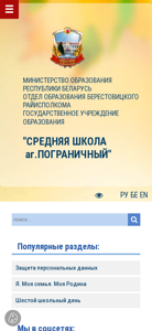 | AI-анализ | --- The portal "Средняя школа аг.Пограничный" is a Belarusian educational website operated by the Ministry of Education of the Republic of Belarus, Brestovich District Executive Committee, and the State Educational Institution "СРЕДНЯЯ ШКОЛА аг.ПОГРАНИЧНЫЙ". The school is located in the village of Пограничный, and its address is ул. Советская, 57. The portal provides information on the school's traditions and achievements, including its leadership, goals, and licensing information. Additionally, it offers details on local normative documents, a peacemaking council, and various innovative projects. Visitors can also find information on the school's virtual museum, anti-corruption and anti-extremism policies, youth politics, and human |