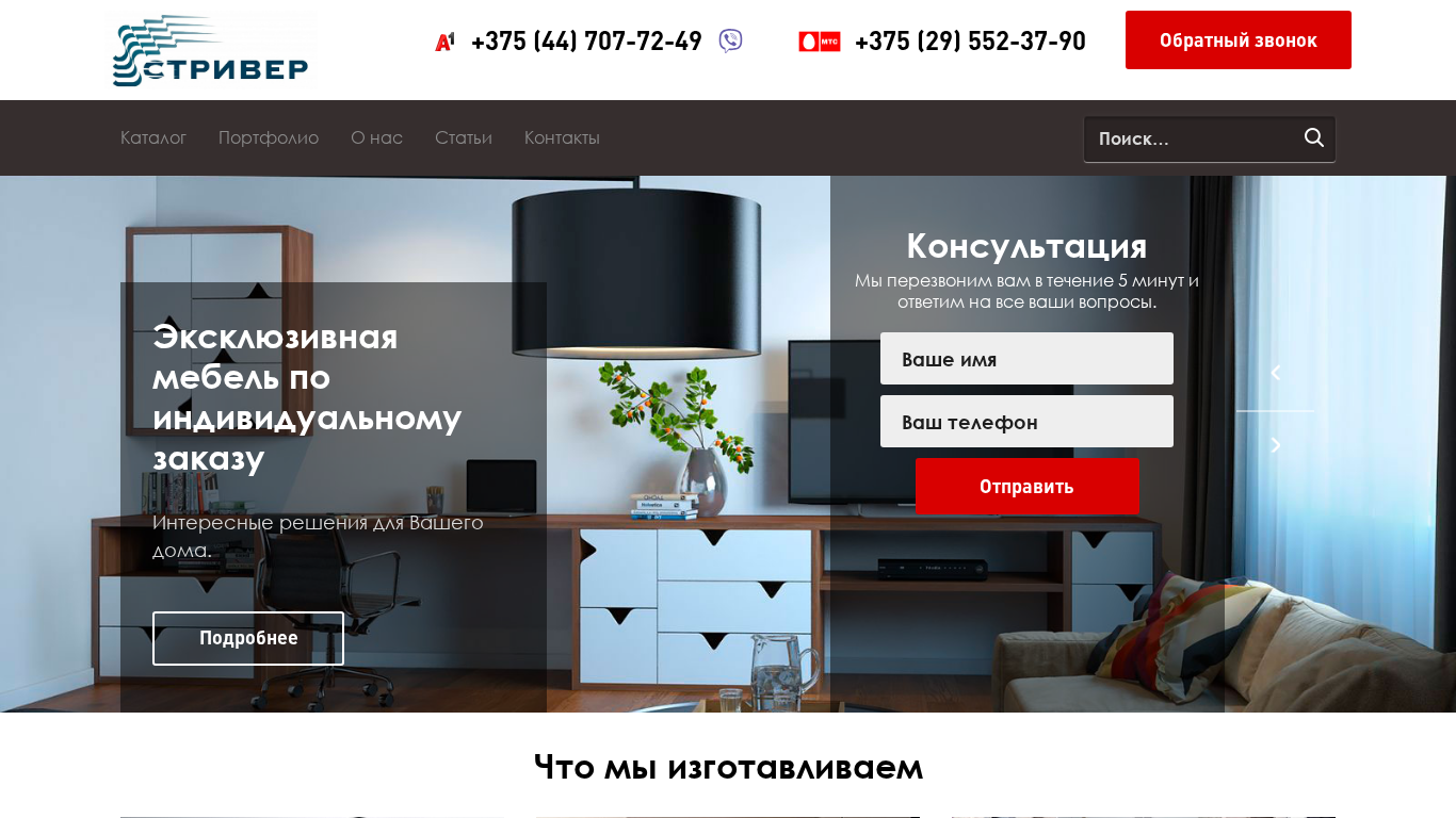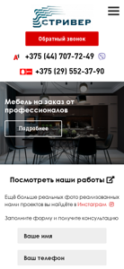 | AI-анализ | The web project 'Striver.by' is an e-commerce platform for custom-made furniture in Minsk, Belarus. It offers production and delivery of corpus furniture for cottages and apartments, with a free on-site designer consultation and local delivery within the city. The site guarantees a 12-month warranty and provides a production timeline of 2-3 weeks. The platform allows customers to order custom-made furniture according to their individual measurements. The website features a catalog section with categories for kitchens, wardrobes, living room furniture, dining tables, and children's furniture. Additionally, it showcases an 'Exclusive' section with unique and custom-designed pieces. The site offers consultation services and contact information for inquiries. |