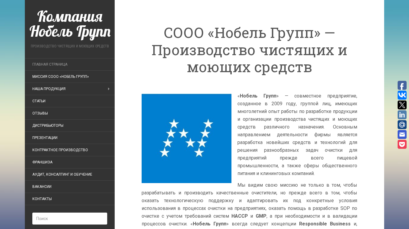 | Название / Заголовок | СООО "Нобель Групп" - Производство чистящих и моющих средств • Компания Нобель Групп |