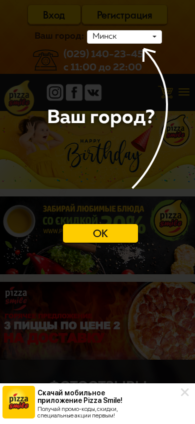 SEO-описание | Заказать пиццу, суши, в Светлогорске проще простого! Пиццерия Пицца Смайл осуществляет бесплатную доставку пиццы, суши, десертов по городу, на дом, в офисы! Pizza Smile - пиццерия хорошего настроения в Светлогорске! Телефон доставки в Светлогорске ☎ +375291402345! |
