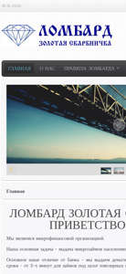 | AI-анализ | This website is the official page for Золотая Скарбничка Ломбард (Golden Treasury Lombard), a microfinance organization in Belarus. The main purpose of the website is to provide information about the company's services, specifically microcredits secured by assets. The title and description tags indicate the organization's name and the term 'ломбард' which translates to 'pawn shop' or 'lombard' in English, reflecting their business model. The top words list includes keywords related to the company's name, as well as 'микрозаймов' (microcredits) and 'ломбард.' The website's contents include sections on the organization's rules, information for clients, types of microcredits, and percentage rates. The site also includes contacts for customer inquiries. |