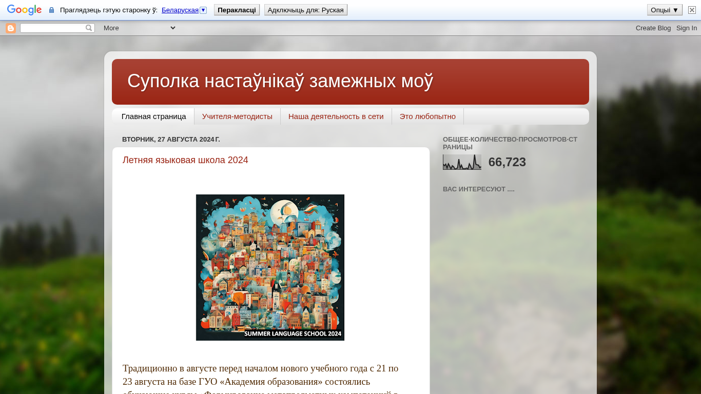 | AI-анализ | The web project Суполка настаўнiкаў замежних моў (Supolka of Foreign Language Teachers) is a blog dedicated to the professional development of foreign language teachers. The website provides information about various educational events and seminars for teachers of foreign languages in Belarusian schools. The main topics covered include language education, methodology, and professional development. The blog includes posts about past and upcoming events, such as the 'Летняя языковая школа' (Summer Language School) and the 'Республиканский семинар-практикум для учителей английского языка' (Republican Seminar-Practicum for English Teachers). The blog also features posts about author's materials and resources for teaching foreign languages. The website's title reflects its focus on foreign language teachers, and the description includes keywords related to education, |