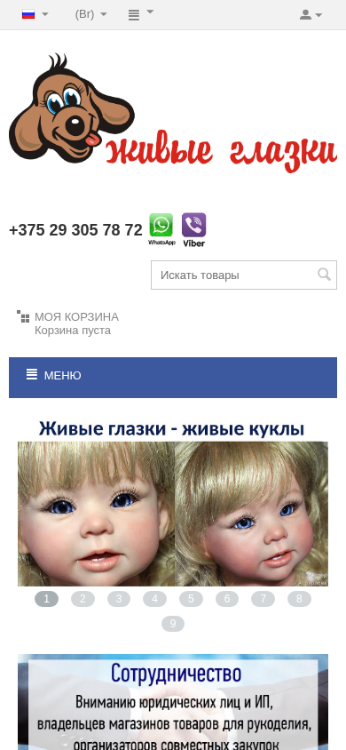 | AI-анализ | --- This online resource is titled "Живые глазки" and is specialized in selling eyes for toys, dolls, decorations, eyes for taxidermy, as well as noses and attachments. The website offers various series of eyes for different types of animals, including mammals, birds, reptiles, and amphibians. There are also sections for special orders and a sale section. The top words on the website include "глаза" (eyes), "серия" (series), "глазки" (eyes), "корзина" (cart), "беларусь" (Belarus), and "cs-cart". The website is available in Belarusian language and accepts orders in rubles and euros. The website includes a FAQ section for questions and answers, information on returns and delivery, and a contact section. The website also features a cart |