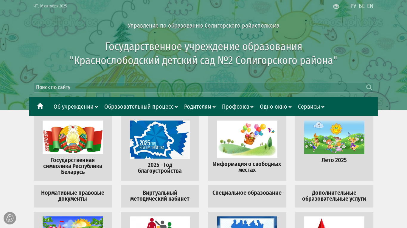 | AI-анализ | The web project "Краснослободский детский сад № 2" (Red Square Children's Kindergarten No. 2) is a government educational institution located in Soligorsk district, Belarus. The website offers detailed information about the kindergarten, its management, educational process, and additional services. Visitors can learn about the kindergarten's schedule, admission process, and staff. The site also features sections on safety, legal documents, and special and additional educational programs. A virtual tour, parent resources, and a FAQ section are also available. The domain is part of the .edus.by top-level domain for educational institutions in Belarus. |