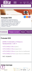 | AI-анализ | The website is a Belarusian business platform for purchasing and selling various goods and services, with a focus on the food industry. It offers a wide range of products, including natural and savory canned goods, salads, vegetable spreads, marinated vegetables, mushrooms, tomato and vegetable sauces, and pudding under the brand names ГОРЫНЬ (Gorya) and ROLNIK. The website includes a contact section with the company's address and multiple phone numbers for various departments, such as marketing, sales and customer service. The company's Unified State Register number is 193246470. The website also features a map to help visitors find the company's location. The platform is open for business Monday to Friday, from 8:00 to 17:00, with a lunch break from 13:0 |