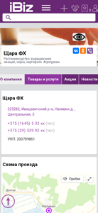 | AI-анализ | The web project "Щара ФХ" is a farming business based in Ивацевичский р-н, Наливки д. , Центральная, 5, Belarus. The company specializes in vegetable, grain, and potato cultivation and offers agro- and eco-tourism services. The contact information includes two phone numbers: +375 (1645) 5 32 xx and +375 (29) 529 92 xx. The business hours are from 09:00 to 18:00, Monday through Saturday, with Sundays being a day off. The company is listed under the categories of Agricultural Production, Farming, Green Tourism, and Ecotourism in Ивацевичах, Belarus. The website provides information on the company, its |