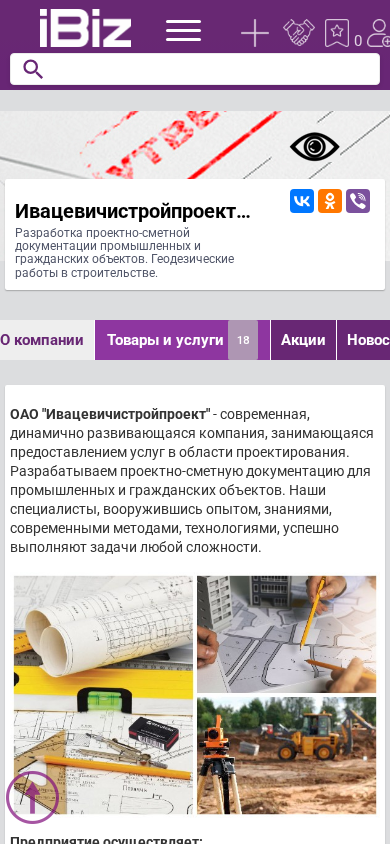 | AI-анализ | The website is a Belarusian business, "Ивацевичистройпроект ОАО," based in Ивацевичи, offering project documentation services for industrial and civil projects, along with geodesic work in construction. The title and description of the website indicate that the company specializes in the development of project-cost documentation for industrial and civil structures, as well as geodesic work. The contact details and location information are also provided, including a street address, city, and phone number. The website does not appear to have any notable keywords or top words associated with it, aside from some numbers and location-specific terms. |