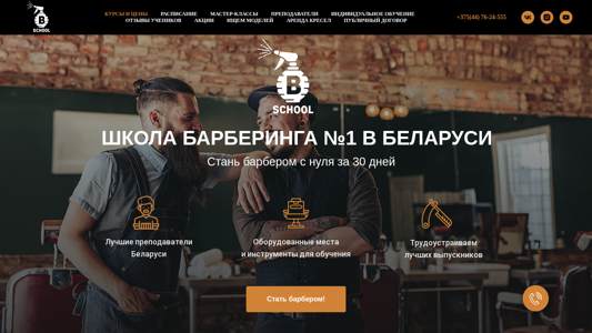 | AI-анализ | --- This online resource is dedicated to B-school, a barber training institute based in Minsk, Belarus. The website offers courses and education for male barbers, featuring testimonials and prices. A new group is starting this month. The site includes sections on courses and pricing, schedules, master classes, instructors, individual training, student reviews, promotions, model recruitment, and chair rental. The public contract number is +375(44) 76-24-555. B-school is the leading barber training school in Belarus, providing well-equipped facilities and tools for learning, and placing top graduates in employment. The school offers three packages for zero-to-barber training: Basic, Premium, and VIP. Individual training and weekend courses are also available. Users can register for a free trial session. The website includes a |