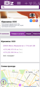 | AI-анализ | This online resource is a business consulting firm based in Minsk, Belarus. The company specializes in the registration and liquidation of legal entities, auditing, and tax consulting services. The contact information, including phone numbers and address, is provided for those seeking their services. The company's schema for navigation includes sections for company information, products and services, news, and announcements. Services offered include registration, liquidation, and mediation for both individuals and businesses, as well as accounting and restorative mediation. The company's hours of operation are Monday through Friday from 9:00 AM to 6:00 PM, with Saturdays and Sundays being closed. The website is accessible at yurkompas.ibiz.by and can be contacted by phone at +375 (44) 573 33 xx or +375 (25) |