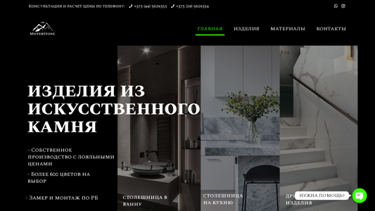 | AI-анализ | This website, titled "Мистер Стоун" (Mister Stone), is dedicated to the production and sale of artificial stone products. The description mentions various types of artificial stone items such as sinks, tables, countertops for kitchens and bathrooms, and stair steps. The website also offers custom cutting services for larger and non-standard size sheets. The materials used for these products include quarry tile and liquid granite. The website provides contacts for consultation and pricing inquiries. |