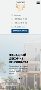 | AI-анализ | The web project "Elitdecor.by" is a Belarusian e-commerce website selling exterior decorative elements made of expanded polystyrene (XPS) for residential and commercial properties. The website offers a wide range of products, including facade decor, moldings, cornices, colonnades, architraves, and various additional elements. All products come with a quality guarantee from the manufacturer and are delivered throughout Belarus. The website provides detailed product information, prices, and specifications, as well as an option to request a quote. The company's portfolio includes various projects, such as sanatoriums, shopping centers, cottages, and consultations. Potential clients are encouraged to leave their contact information to receive a call back from a specialist. The website's advantages include high-quality and affordable products, the ability to create custom orders, timely delivery, and assistance in selecting |