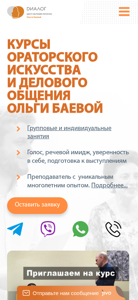 | AI-анализ | This website is a training center for rhetoric called "Dialogue" by Olga Baevoy. It offers various courses on rhetoric and oratorical skills. The center was founded by Olga Baevoy in 1991 and is run by her. She is a professional rhetoric teacher, a member of the Russian Rhetorical Association of Researchers and Teachers of Rhetoric, a psychologist, and a coach. The website provides information about the center's history, friends, ways of payment, and contacts. The center offers group and individual lessons on various rhetoric topics, including voice development, persuasive speaking, business rhetoric, and public speaking. The courses are designed to help students improve their speaking abilities, confidence, and image. The website also mentions an author's methodology and scientific publications, as well as various events and testimonials. The courses cover various aspects of |