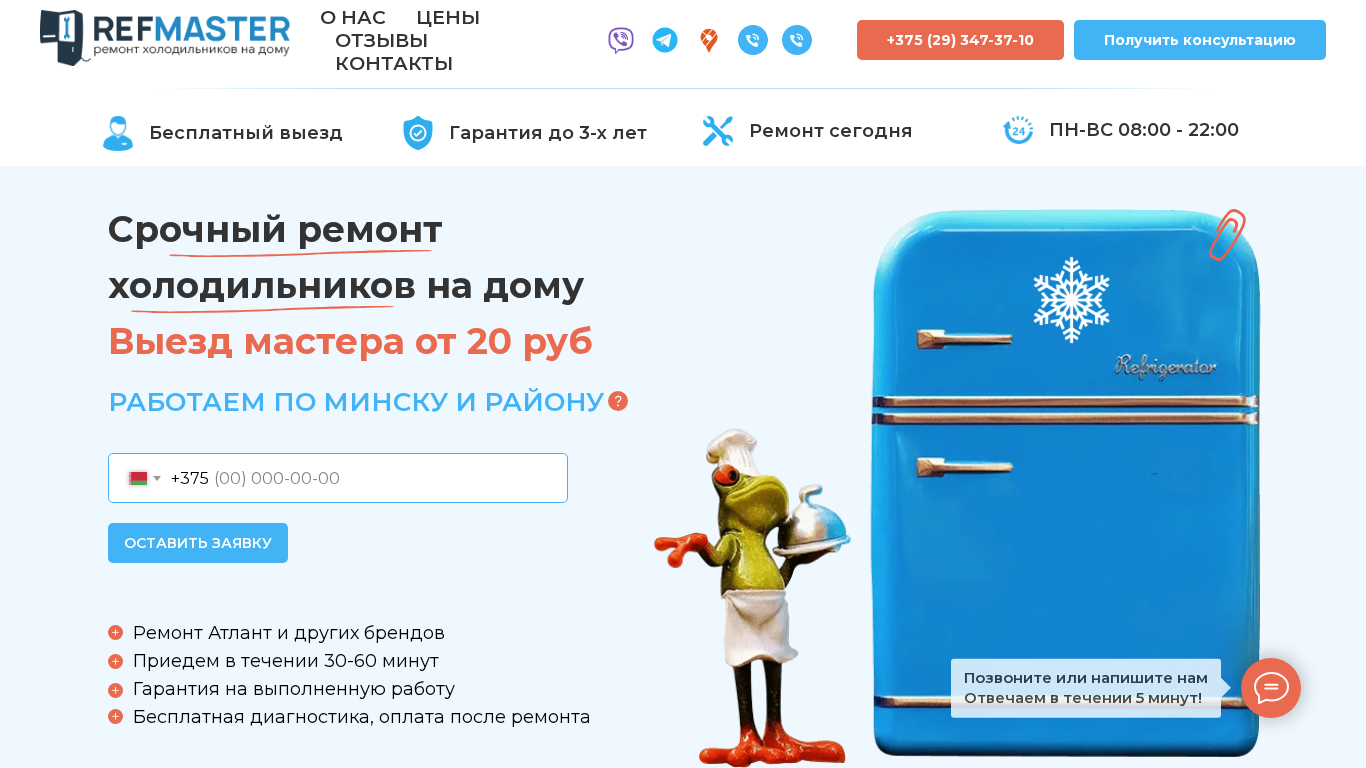 | SEO-описание | Срочный ремонт холодильников ❄️ на дому в Минске и Минском районе ⭐ Мастер по недорогому ремонту холодильников атлант и других производитетелей ✳️ от 20 рублей за выезд ☎️ +375 (29) 347-37-10 |