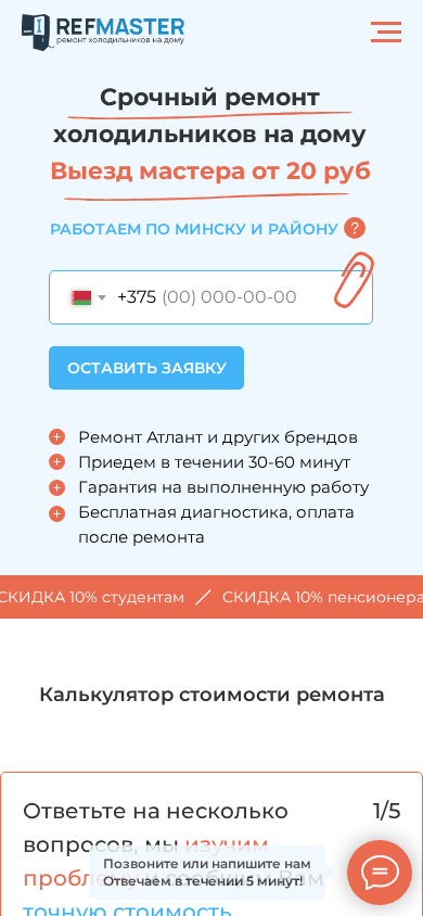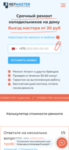 | AI-анализ | language: ru country: BY This website is a home appliance repair service based in Minsk, Belarus, specializing in the repair of refrigerators. The company offers a quick repair service for refrigerators at customers' homes in Minsk and the surrounding area. The repair master charges from 20 rubles for a visit, and the repair price is not specified in the given data. The website promises a three-year warranty on completed work and offers free diagnosis. The company repairs refrigerators of various brands, including Atlant, and promises to arrive within 30-60 minutes. Discounts of 10% are offered to pensioners, large families, and students. The website also contains a calculator to determine the cost of repairing a refrigerator based on answering a few questions. The website is available in Russian and is registered in Belarus. |
