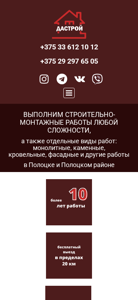 | AI-анализ | This online resource is dedicated to providing building and construction services in Polotsk and the Polotsk region, Belarus. The company offers a range of services including foundations, brick and block laying, roofing, and facade covering and insulation for houses and bathhouses. The website states that the team consists of experienced specialists who aim to deliver high-quality, quick and cost-effective work. The site provides examples of completed projects and contact information for inquiries. Users can request a quote for specific projects and the team will handle the procurement and delivery of materials. The company also guarantees fair prices and individual attention to each client, with a three-year warranty on completed work. The site also features a contact page with phone numbers and an email address. The company is registered under the name Dastroi IP Skurat A.I. with the UNP number 23900 |