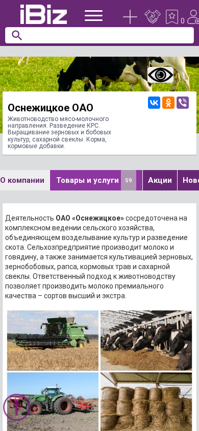 | Название / Заголовок | Оснежицкое ОАО - Животноводство мясо-молочного направления. Разведение КРС. Выращивание зерновых и бобовых культур, сахарной свеклы. Корма, кормовые добавки.. 225751, , Оснежицы аг., Ленина, 9 |