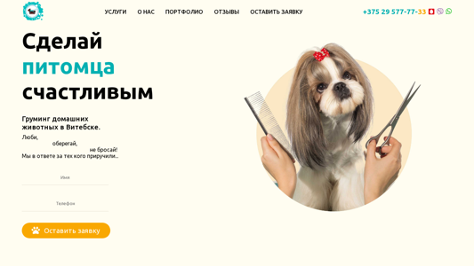 | SEO-описание | Профессиональный груминг в Витебске. Сертифицированный специалист может оказать ряд услуг по уходу за вашим питомцем включая стрижку, купание и чистку зубов. |