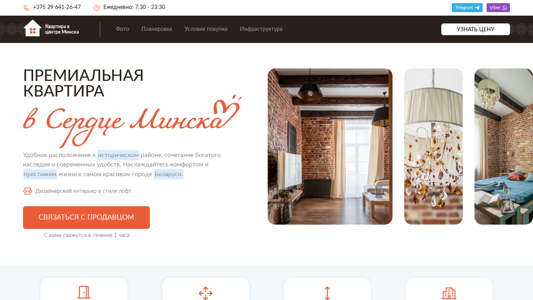 | Название / Заголовок | Премиальная квартира в центре Минска | Удобное расположение в историческом районе, сочетание богатого наследия и современных удобств. Наслаждайтесь комфортоми престижем жизни в самом красивом городе Беларуси. |