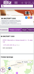 | AI-анализ | The portal is a business-to-business (B2B) marketplace for the sale and production of linen straw, a natural and ecological product used in livestock farming and agriculture, located in Belarus, specifically in the Щомыслицкий district of the Minsk region, office 12A. The website offers various services including company listings, job postings, and news sections. The contact information for M-ЭКСПОРТ ООО, the company operating the portal, is provided, along with office hours. The domain is registered under 'OOO "АЙБИЗ МЕДИА" - Каталог предприятий и организаций Беларуси.' |