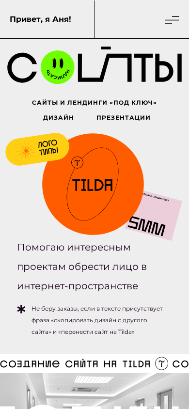 | AI-анализ | This online resource is a personal website for a designer named Aня. She offers website and landing page design services for businesses, and provides assistance with site setup on Tilda. The website does not accept projects involving copying designs from other sites or transferring sites to Tilda. Aня is open to working with interesting projects and can be reached via WhatsApp, email, or through her public offer. She holds a state registration number 0575156 from 2018 and offers safe online payment through Webpay. The website operates Monday to Friday from 10:00 to 20:00. |