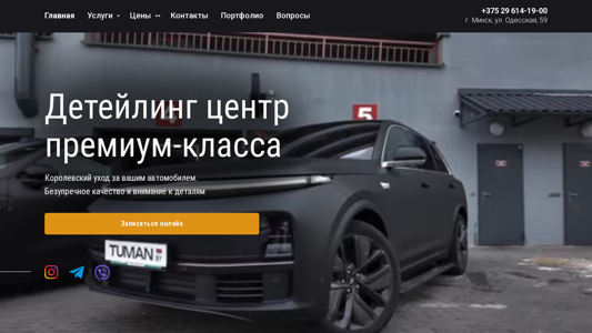 | AI-анализ | The web project Tuman.by is a professional car detailing center located in Minsk, Belarus. It offers a full range of services including car washing, chemical cleaning, and polishing. The main service provided is the application of anti-gravel coating, which protects the car body from scratches and scuffs, along with a guarantee on the work. The contact information and prices for the services are listed on the website. |