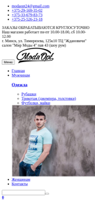 | AI-анализ | --- The web project "ModaOpt" is an optic store selling cheap clothing in bulk with necessary documents in Belarus. It is located in Minsk at ul. Timiryazeva, 125k10, TC "Zhdanovichi" salon "Mir Mody 4" (show room). The store offers men and women's clothing such as shirts, jackets, football shirts, and women's blouses. The contact information provided includes phone numbers +375-29-169-35-02, +375-33-679-83-73, and +375-25-526-23-18. Orders are processed around the clock, and the store operates from Monday to Friday, 10.00-18.00 |