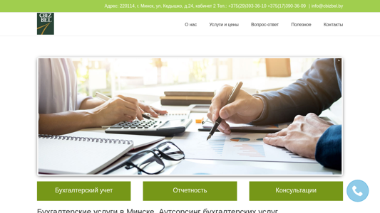 | AI-анализ | The web project "CBIZ-BEL" is a Minsk-based accounting company offering professional accounting services. The company specializes in outsourcing accounting, including bookkeeping, accounting reporting, tax reporting, and MSFO reports, as well as providing consulting services and human resources accounting. Keywords associated with the website include 'buhgalter', 'otchetnost', 'consultations', 'uslugi', 'uchet', 'vedanie', and 'buhgalterskie'. The website contains sections for bookkeeping services, accounting reporting, tax reporting, MSFO reports, consulting services, and human resources accounting. The company also offers services for the preparation of annual reports and provides legal consultations. The contact information includes a phone number and email address. The website is located at 220114, g. Minsk, ul. Kedyshko, d. |