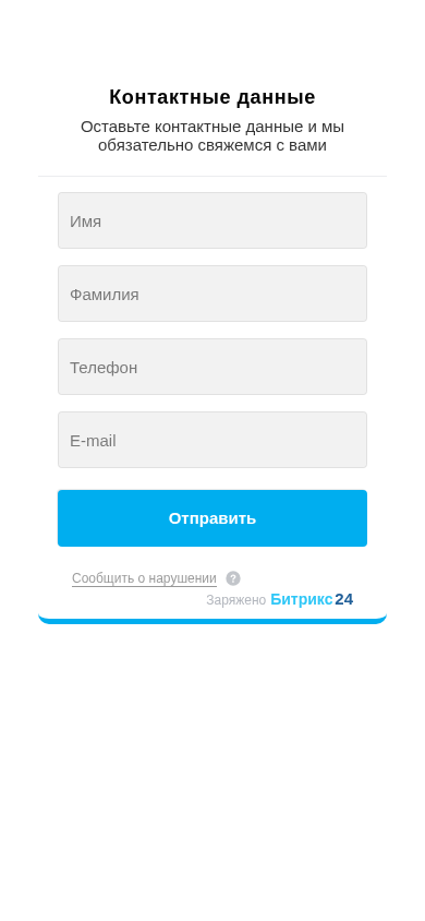 | AI-анализ | The website is a contact form for the company Bitrix24, as evidenced by the title "Контактные данные" and the description "Сообщить о нарушении". Users are required to fill in their name, surname, phone number, and email address to submit a request, as indicated by the form's fields. The website is available in multiple languages including English, and users can also report any issues or violations using the "Сообщить о нарушении" feature. The form is powered by Bitrix24, as stated in the domain name. |