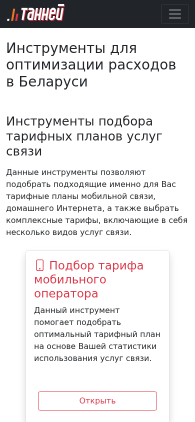 | Название / Заголовок | Инструменты для оптимизации расходов в Беларуси | Танней |