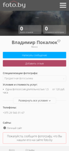 | AI-анализ | This website belongs to photographer Vladimir Pokalyuk from Minsk, Belarus, specializing in 'Predметная фотосъемка' or subject photography. The site showcases his work in this category. Vladimir works in various photographic genres in the city of Minsk and boasts a large practical experience and professional equipment, ensuring high-quality images. |