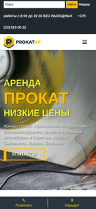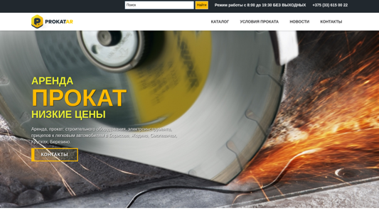 | AI-анализ | The web project ProkatAR.by is an equipment rental service based in Borisove, Belarus, offering construction equipment, electrical tools, measuring instruments, gardening equipment, heaters, pneumatic equipment, sanitary equipment, welding equipment, cleaning equipment, pumps, benzine generators, lifting equipment, metal detectors, and hand tools for rent. The rental service is available from 8:00 to 19:30, Monday to Saturday, with the contact number +375 (33) 615 00 22. The website provides a catalog of equipment for rent and details on rental conditions, news, and contacts. The company offers low prices and flexible rental terms for clients. By renting from ProkatAR.by, clients can save money, work with quality equipment, and enjoy a wide selection of options. The company prides itself on supp |