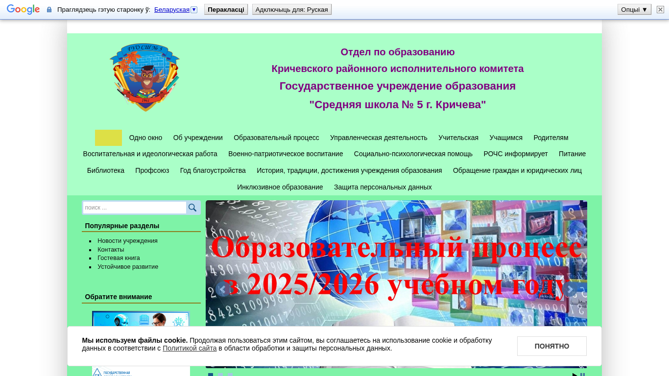 | Название / Заголовок | СШ № 5 г. Кричева |