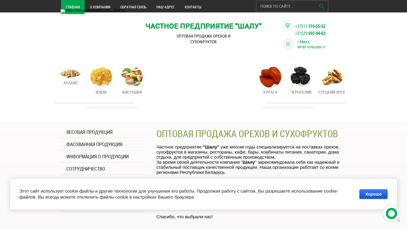 | Название / Заголовок | Оптовая продажа орехов и сухофруков - Частное предприятие Шалу г. Минск |