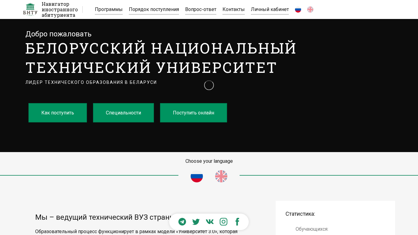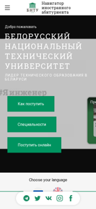 | AI-анализ | This website is the international student admission portal for Belarusian National Technical University (BNTU) in Minsk, Belarus. It provides a navigation tool for international applicants to choose a specialty, view past admission requirements, and access information about the enrollment process for 2019. The university offers a range of programs and the website helps applicants make an informed decision by displaying essential details such as admission requirements, program duration, and tuition fees. The website is available in Russian and English languages. |