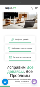 | AI-анализ | The portal topic.by is a repair and resale platform for electronic devices in Belarus. The site offers services for both repairing malfunctioning devices and purchasing new or used devices. Users can select their device type, model, and problem to receive a quote and schedule an appointment. The site also includes a blog, FAQ, and customer reviews. Common issues addressed include cracked screens, broken charging ports, and faulty home buttons, among others. The site is open for business Monday through Saturday from 6:00 PM to 10:00 PM, and on Sundays by request. The address and phone number are provided for in-person visits or calls. |