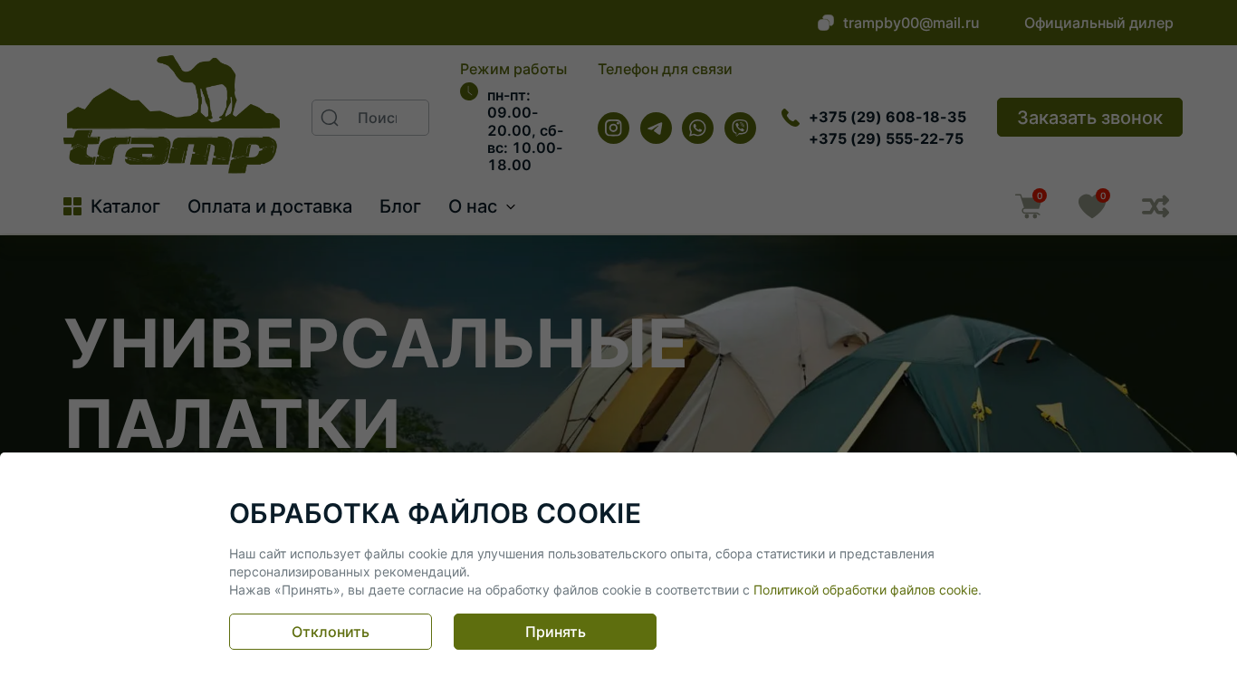 | SEO-описание | Tramp — проверенное туристическое снаряжение от официального производителя. Более 20 лет на рынке. Оборудование, которому доверяют путешественники. Доставка по Беларуси или самовывоз со склада в Минске ☎ Звоните +375 (29) 555-22-75 |
